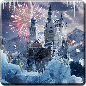 Experience a magnificient fantasy castle in a beautiful winter landscape. Watch the falling snow or the bright fireworks in the distance.Watch out for falling icicles and don't forget