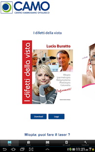 Il Dr Lucio Buratto con la collaborazione del Centro Ambrosiano Oftalmico di Milano mette a disposizione gratuitamente tutte le sue più recenti pubblicazioni facenti parte delle collane "I difetti della vista" (miopia, cataratta,astigmatismo,ipermetropia,presbiopia) ed "Occhio e" pubblicando periodicamente ogni nuovo libro sempre gratuitamente nell'app prima ancora che esca in libreria.What's new in Occhio e Vista 1.1